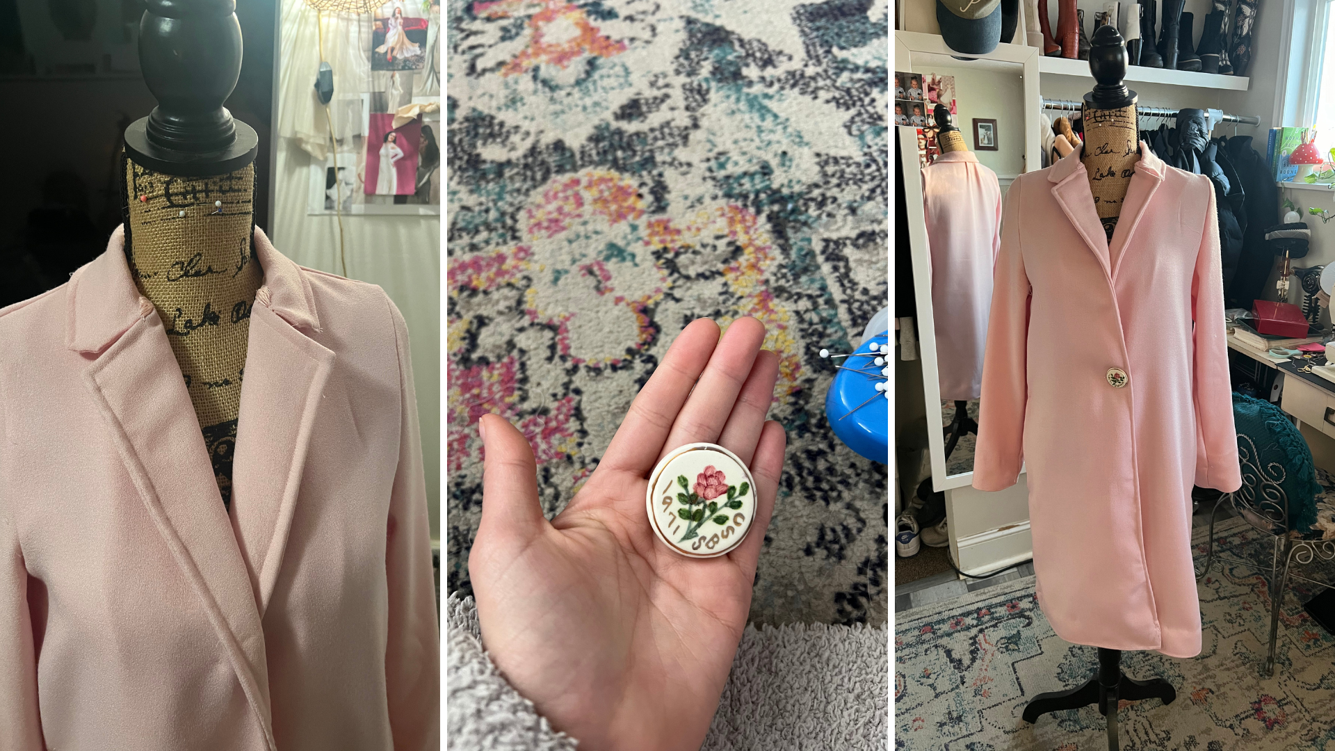 The finishing touch was an antique button. I found this gorgeous button on Etsy, which was created in the California Button Society. I didn’t realize it at the time, but my mom called out that 1971 is when she was born. It made me fall in love with the button even more.