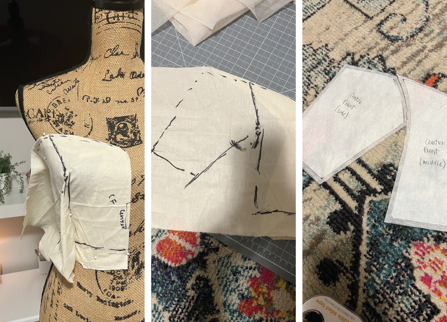 By creating these three different tops, I felt confident in the front pattern for the bodice. The different sleeves gave me a great idea of what I wanted, but I wasn’t completely set on a style yet.